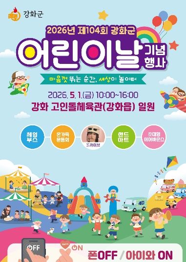한방통신사 신유철기자 기자 | 강화군은 제104회 어린이날을 맞아 오는 5월 1일 오전 10시부터 강화읍 고인돌체육관에서 어린이날 기념행사를 개최한다.