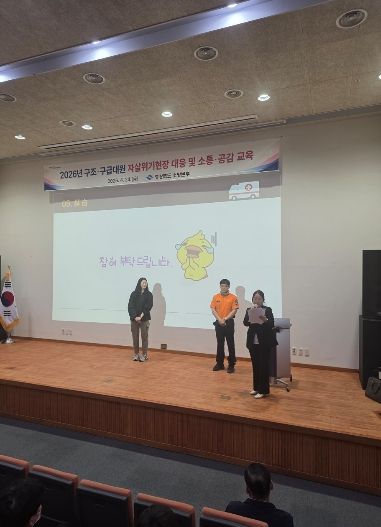 박성열 경북소방본부장은 “이번 교육이 구조・구급대원의 자살 위기 현장 대응 전문성을 한층 높이는 계기가 되길 바란다”며 “앞으로도 체계적인 전문교육을 지속 추진해 도민의 소중한 생명을 보호하고 생명존중 문화 확산에 앞장서겠다”고 밝혔다.