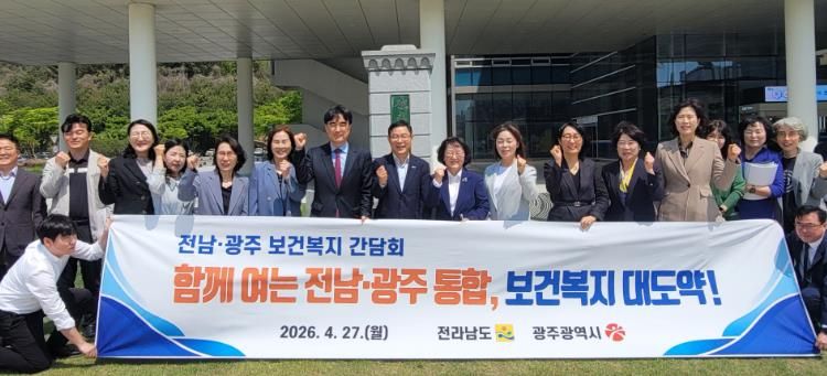 전남도와 광주시는 27일 도청 서재필실에서 두 시·도 복지국장과 과장단 등 30여 명이 참석한 가운데 ‘전남광주통합특별시 성공적 출범을 위한 보건복지부서 간담회’를 열었다.