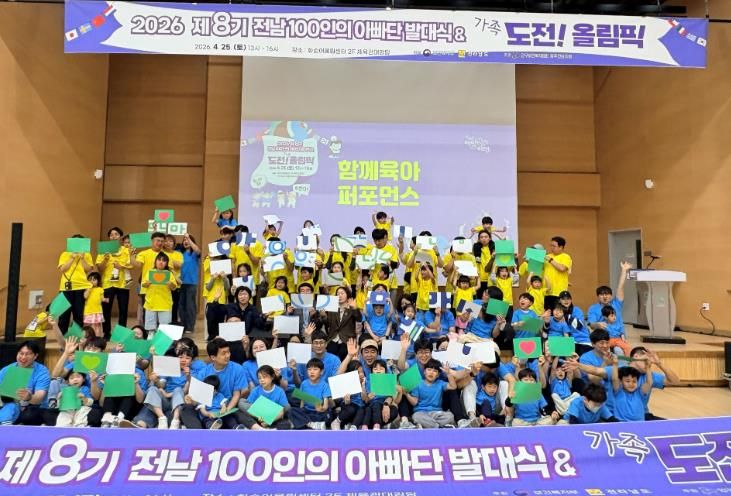 한방통신사 신다은기자 기자 | 전라남도는 최근 화순 어울림센터체육관에서 ‘2026년 제8기 전남 100인의 아빠단 발대식 및 도전! 가족올림픽’을 열고, 아빠의 육아 참여 확대와 함께하는 돌봄 문화 확산을 다짐했다.