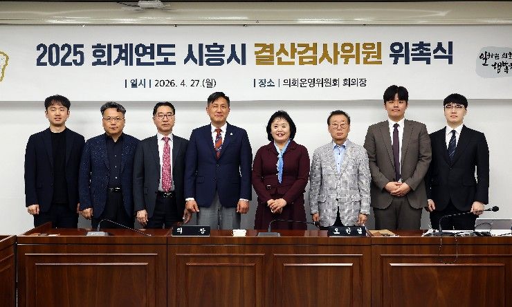 한방통신사 신유철기자 기자 | 경기 시흥시의회가 4월 27일 의회운영위원회 회의장에서 2025회계연도 시흥시 결산검사위원 위촉식을 개최했다.