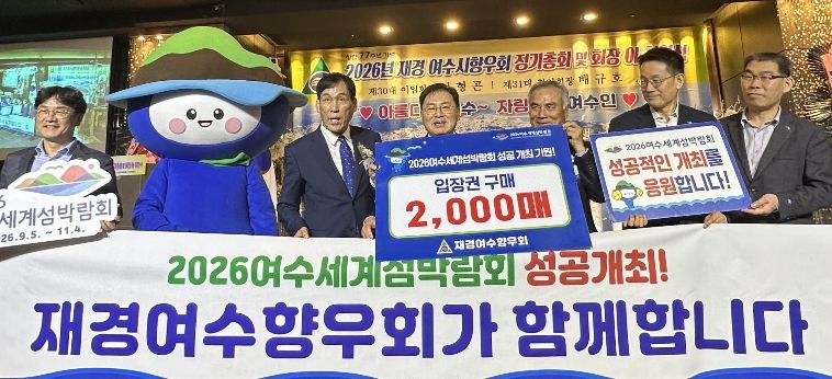 한방통신사 신다은기자 기자 | (재)2026여수세계섬박람회조직위원회는 지난 26일 재경여수향우회 회장 이취임식에서 향우회와 2,200만 원 상당의 입장권 구매약정을 체결했다.