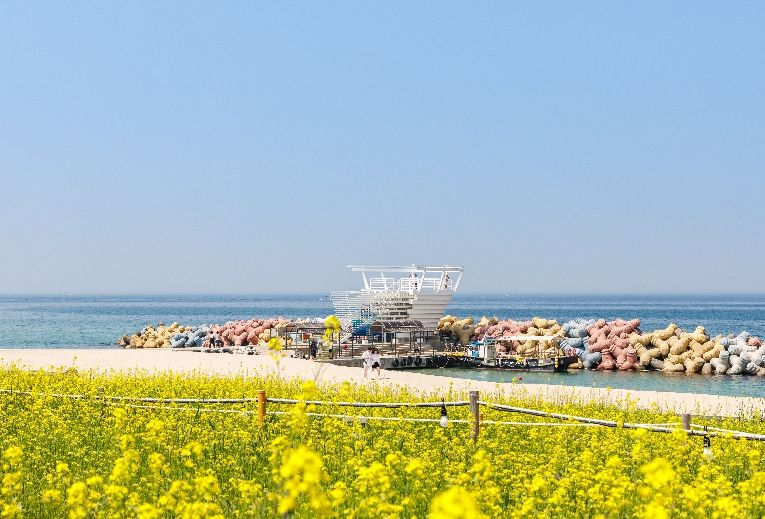 특히, 유채꽃이 만개하는 시기에는 노란 꽃물결이 어우러져 한층 화사한 봄 바다의 정취를 더하며, 밤이 되면 야간경관 조명이 해변 산책로를 은은하게 밝혀 산책의 매력을 한층 높인다.