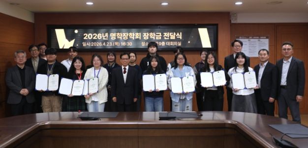 한방통신사 신태공 기자 | 재단법인 명학장학회는 2026년 4월 23일 한국영상대학교를 시작으로 ‘2026년도 장학금 전달식’을 개최하고 지역 인재 육성과 학생들의 자발적인 동아리 활동 등을 지원하기 위한 장학금 약 8천3백만원을 전달했다.