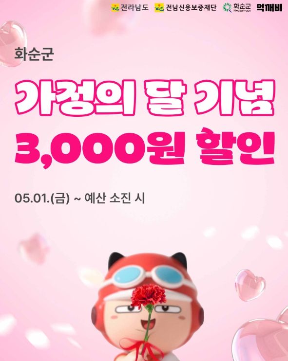 아울러 화순군은 ‘5월 가정의 달’을 맞아 오는 5월 1일부터 먹깨비 앱 할인 이벤트를 별도로 운영한다.