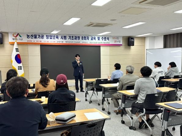 한방통신사 신태공 기자 | 서산시농업기술센터는 4월 28일 농산물가공 창업보육 기초과정 수료식을 개최하고, 총 17명의 교육생에게 수료증을 수여했다.