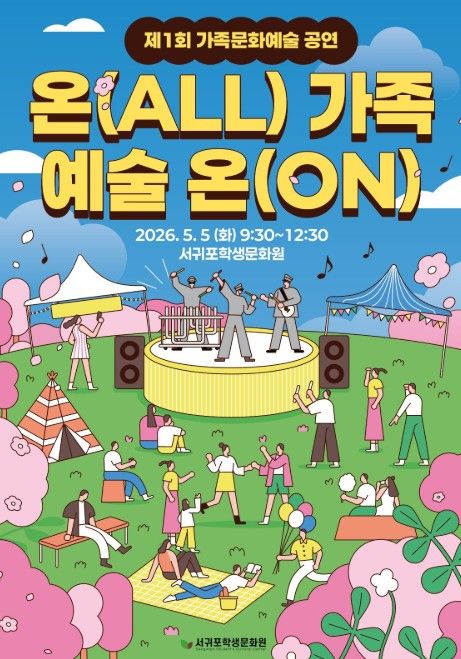 한방통신사 신유철기자 기자 | 제주도교육청 서귀포학생문화원은 5월 5일 어린이날을 맞아 가족 공동체의 소통과 연대를 강화하고 지역주민의 문화예술 향유 기회를 확대하기 위해 ‘제1회 가족문화예술 공연: 온(ALL) 가족 예술 온(ON)’을 개최한다고 밝혔다.