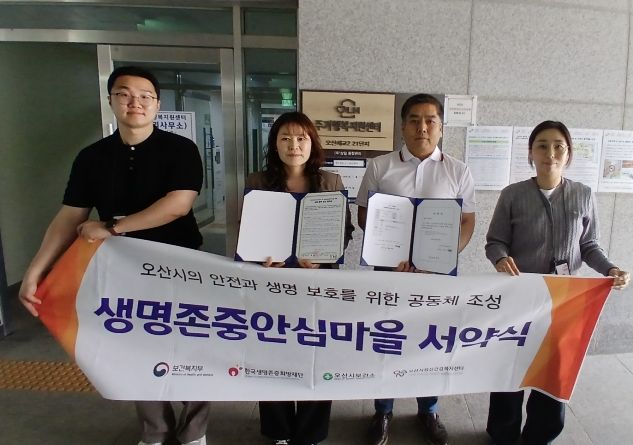 한방통신사 신유철기자 기자 | 오산시정신건강복지센터 부설 자살예방센터는 지난 29일 ‘오산청호휴먼시아1단지’와 ‘오산세교2LH21단지’와 생명존중 문화 확산을 위한 업무협약 및 생명존중안심마을 서약식을 개최했다고 밝혔다.