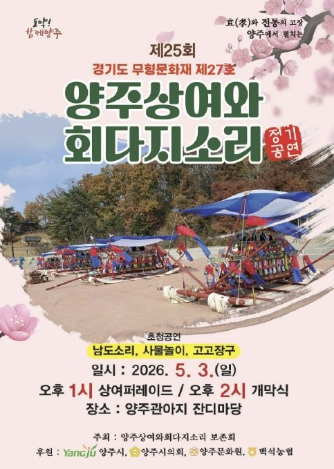 한방통신사 신유철기자 기자 | 양주시는 ‘제25회 양주상여와회다지소리 정기공연’을 오는 5월 3일 양주관아지에서 개최한다고 밝혔다.
