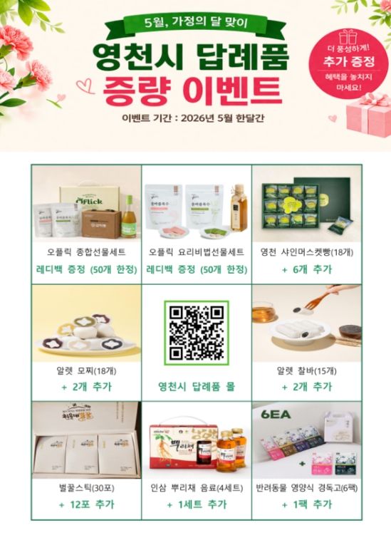 한방통신사 신유철기자 기자 | 영천시는 5월 가정의 달을 맞아 고향사랑기부제 참여를 확대하고, 지역경제 활성화를 도모하기 위해 다양한 이벤트를 추진한다고 밝혔다.