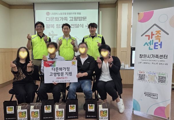 LG전자 노동조합 창원1지부는 2013년부터 다문화가족 고향방문 지원사업을 지속으로 추진해 왔으며, 코로나19로 일시 중단된 기간(2020~2022년)을 제외하고 현재까지 총 34가족을 지원하는 등 지역사회 나눔 실천에 앞장서고 있다.