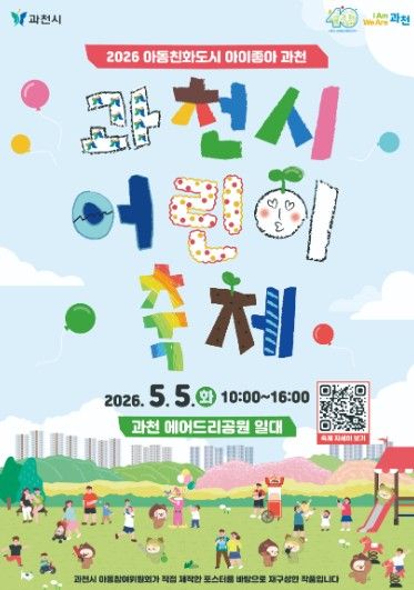 한방통신사 신유철기자 기자 | 과천시는 다가오는 5월 5일 제104회 어린이날을 맞아 어린이와 가족이 함께 참여하는 ‘2026년 과천 어린이 축제’를 과천에어드리공원 일대에서 개최한다고 밝혔다.