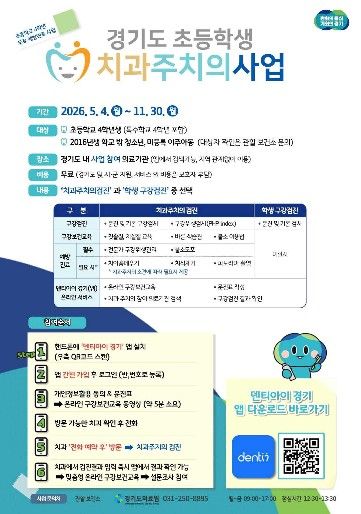 한방통신사 신유철기자 기자 | 평택시는 오는 5월 4일부터 11월 30일까지 관내 초등학교 4학년 학생들을 대상으로 ‘2026년 경기도 초등학생 치과주치의 사업’을 추진한다고 밝혔다.
