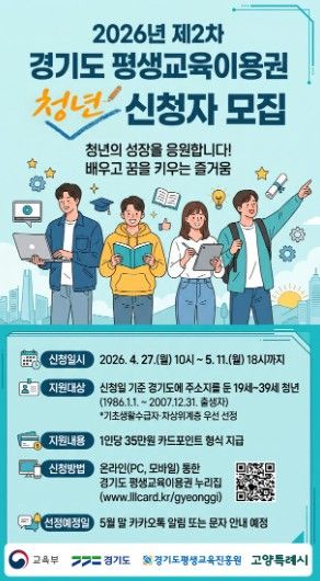 한방통신사 신유철기자 기자 | 고양특례시가 고양시 청년들이 오는 5월 11일까지 ‘2026년 제2차 경기도 평생교육이용권’신청을 완료할 것을 당부했다.