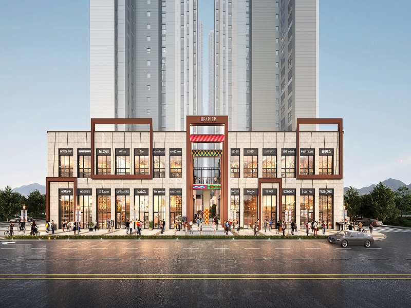 파피에르는 프랑스어로 종이를 뜻하며 종이에 그려진 예술작품처럼 상업시설을 화려함과 예술적 감성을 담은 공간이자 예술과 쇼핑이 공존하는 새로운 공간으로 만들겠다는 반도건설의 의지가 담겨있다.