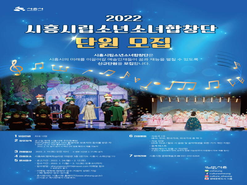 시흥시(시장 임병택)가 2022년도 시흥시립소년소녀합창단 신규단원을 공개 모집한다.