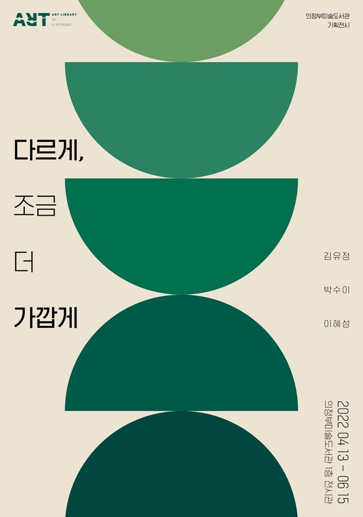의정부시(시장 안병용)는 오는 4월 13일부터 『다르게, 조금 더 가깝게』展을 개최한다고 밝혔다. 이번 전시는 다양한 관계성을 식물과 예술적 관점으로 풀어내고 들여다보는 전시이다. 『다르게, 조금 더 가깝게』展에는 현대미술계에서 가장 활발히 활동하고 있는 김유정, 박수이, 이혜성 작가가 참여하였으며, 회화, 설치, 드로잉 등 110여 점의 작품들을 만나볼 수 있다.