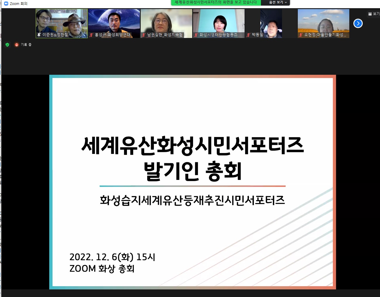 '화성습지 세계유산등재 추진 시민서포터즈'(이하 시민서포터즈)가 6일, 인터넷 화상 총회를 진행하며 첫 발을 내딛었다.
