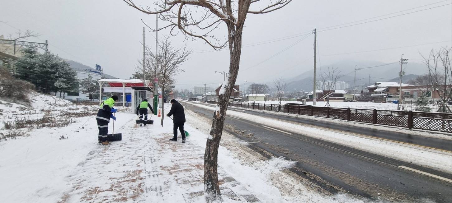 관내 주요도로 제설작업을 위하여 제설용 차량 4대와 면사무소 청소차 등 6대를 운용하고 있으며, 시가지내 인도는 상인회에서 자발적으로 제설작업을 하도록 협조를 요청하였다.