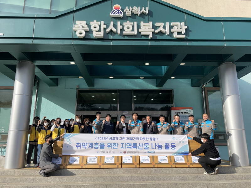 삼표시멘트(대표 이종석)는 삼표그룹 창립기념일을 기념하여 실시하는 릴레이 사회공헌 활동으로 지난 11월 23일(수) 지역특산물(미역 및 황태채) 100박스(약 4,000,000원 상당)를 삼척시종합사회복지관에 기탁하였다.