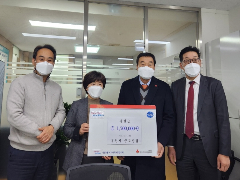 군포신용협동조합 본점(이사장 김윤식)은 지난 12월 1일 연말을 맞아 관내 취약계층을 위해 써달라며 후원금 150만원을 군포시 산본2동 행정복지센터에 기탁했다.
