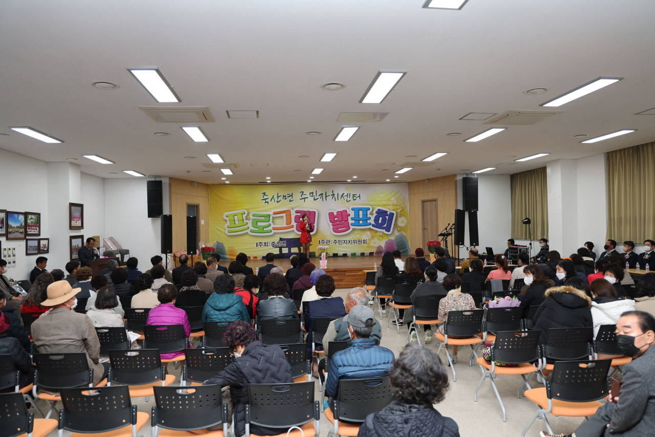 이어 전문 mc가 진행한 2부는 김경태 죽산면장이 축하공연으로 색소폰을 연주하는 것으로 시작해 에어로빅, 기체조, 요가, 소셜댄스, 라인댄스, 노래교실 등 죽산면 주민자치센터 6개 프로그램 수강생들이 그동안 갈고닦은 실력을 마음껏 선보였다.