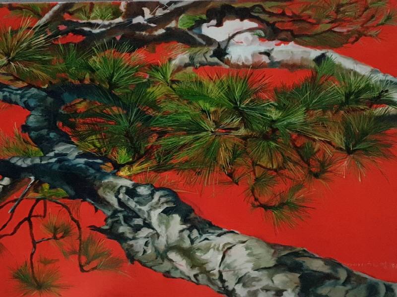 자연을 사랑하는 김영희 작가는 ‘불로장생’의 상징인 소나무를 사실적으로 그린다. 소나무 연작에서는 작가의 소나무에 대한 애정, 푸른 심성, 의연함이 느껴진다.