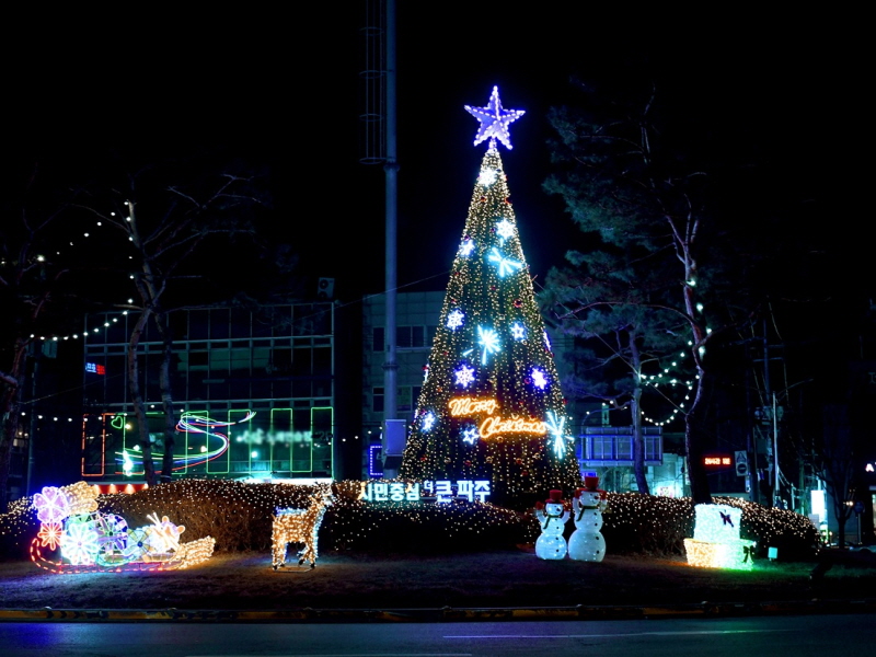 이번 트리는 지름 3.5m, 높이 11m로, 금촌·문산 회전교차로 및 교하 중앙공원 3곳에 설치해 2023년 2월 28일까지 환하게 불을 밝힐 예정이다.