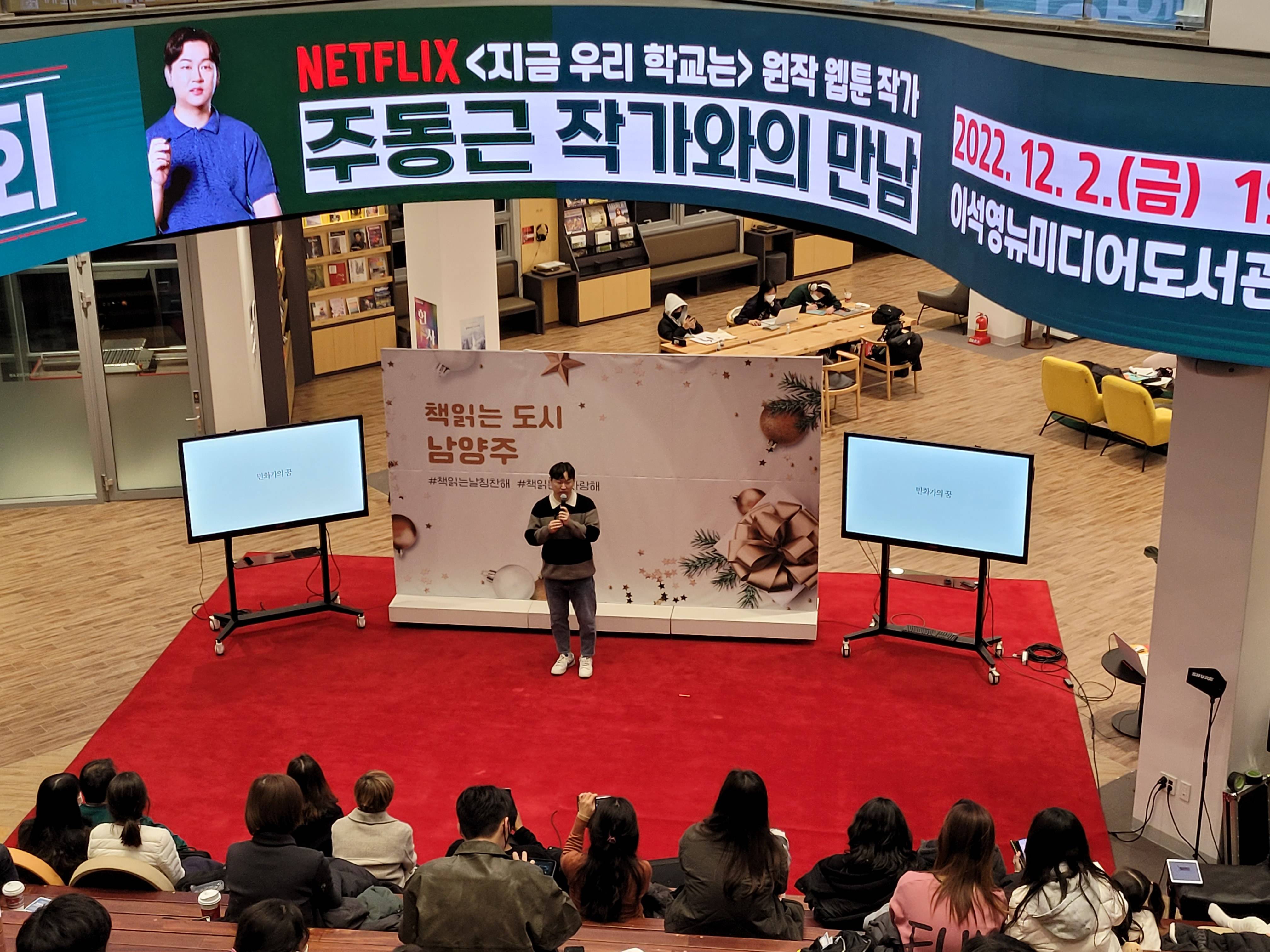 시는 독서 진흥과 지식 정보 확산, 도서관 문화 사업의 일환으로 『책 읽는 도시 남양주 작가 초청 강연회』를 마련했으며, 첫 번째 강연으로 넷플릭스 화제의 드라마였던 「지금 우리 학교는」의 원작 웹툰을 그린 주동근 작가를 초청해 데뷔 과정 및 스토리텔링, 작품의 영상화 과정 등 생생한 작업 이야기를 들었다.