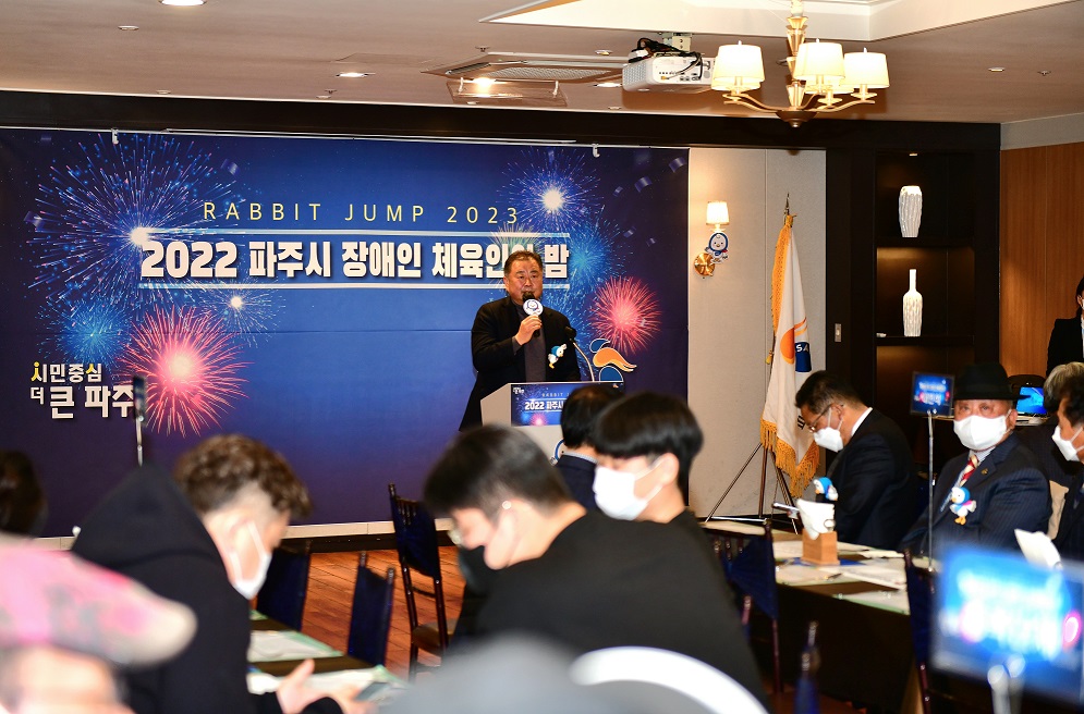 파주시(시장 김경일)는 장애인체육 발전을 위해 앞장선 유공자들을 표창하고 장애인 선수들을 격려하기 위해 30일 센트리움 웨딩홀에서 ‘2022 파주시 장애인체육인의 밤’ 행사를 개최했다.