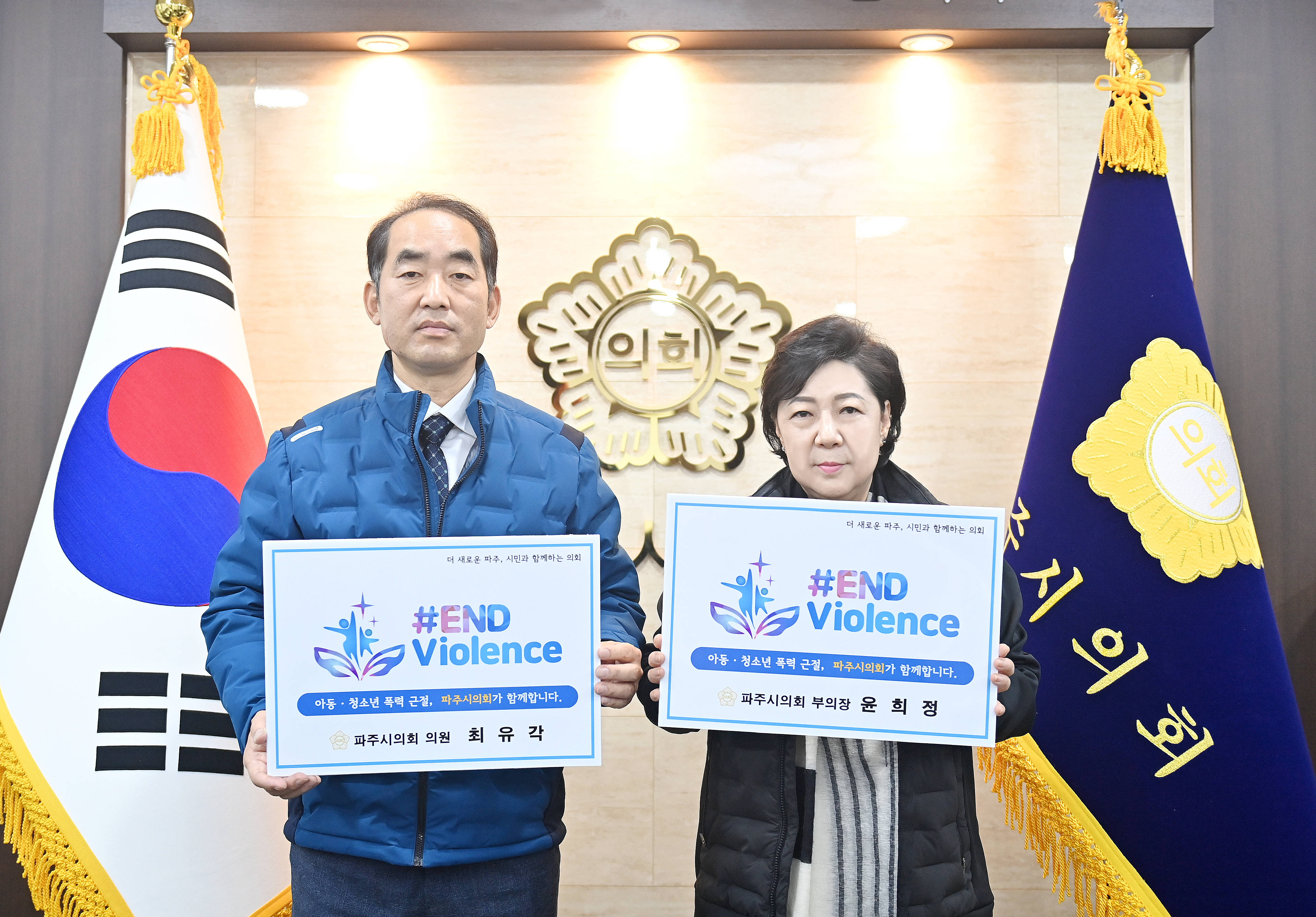 파주시의회 윤희정, 최유각 의원은 1일 아동 폭력근절 온라인 캠페인 ‘ENDviolence 챌린지’에 동참했다.