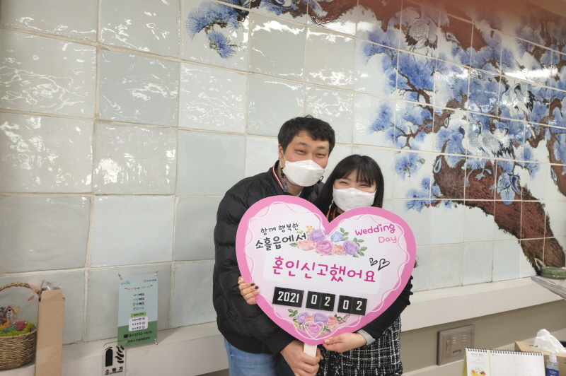 혼인신고기념 사랑의 피켓 포토서비스는 혼인신고를 마친 신혼부부들에게 ‘함께, 행복한 소흘읍에서 혼인신고 했어요!’라는 문구가 새겨진 피켓과 함께 즉석카메라로 사진을 촬영해 전달하는 서비스다.