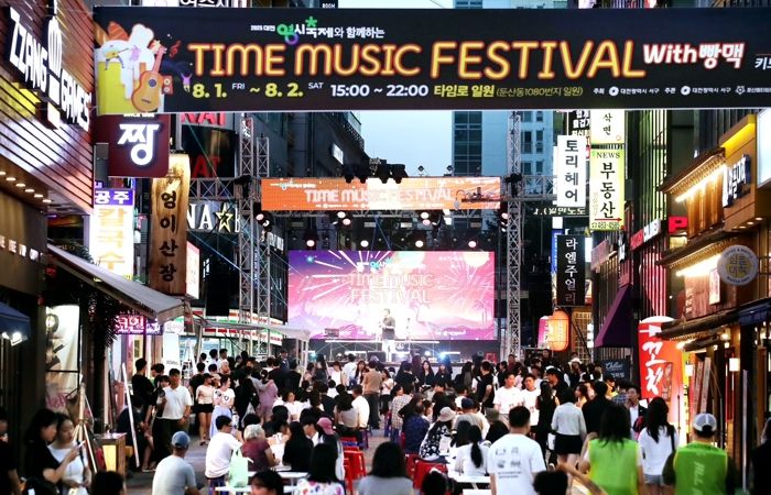 한방통신사 신태공 기자 | 대전 서구가 주최한 ‘2025 타임뮤직 페스티벌 with 빵맥’이 지난 8월 1일부터 2일까지 둔산동 타임로 일원에서 이틀간 성황리에 열렸다. 이번 축제는 시민들의 높은 관심과 참여 속 도심에 활기를 불어넣으며 여름밤의 특별한 추억을 선사했다.