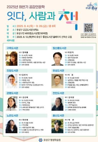 한방통신사 신태공 기자 | 대전 유성구는 9월 ‘독서의 달’을 맞아 한 달간 관내 8개 공공도서관에서 2025년 하반기 공감인문학 강연 ‘잇다, 사람과 책’을 운영한다.