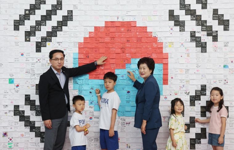 특히, 유치원생부터 어르신까지 남녀노소 다양한 연령층이 참여해 의미를 더했으며, 각자의 마음을 담은 1,000여 장의 메시지가 모여 하나의 거대한 태극기로 완성됐다.