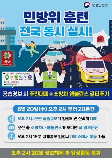 이날 훈련에는 대전지역 5개 소방서에서 지휘차·펌프차·구급차 등 23대가 투입되며, 계룡로·계백로 등 정체가 잦은 도로를 포함해 자치구별 1개 구간에서 동시에 진행된다. 각 소방서는 민방위 공습경보가 발령되면 실제 훈련 구간을 주행하며 시민 협조 사항을 현장에서 안내한다.