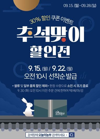 한방통신사 양호선기자 기자 | 철원군은 추석명절을 맞아 9월 15일부터 9월 28일까지『오늘의농부』 쇼핑몰에서 입점 품목(쌀 및 일부품목 제외) 30% 특별할인 행사를 진행한다고 밝혔다.