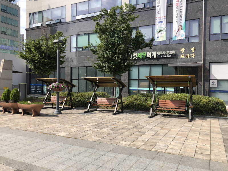 동은 젊음의 광장에 그네의자 6개를 설치해 주민들이 휴식을 즐기며 쉬어갈 수 있도록 했다.