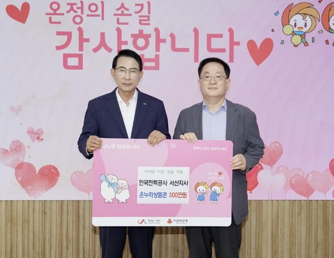 한방통신사 신태공 기자 | 충남 서산시는 지난 25일 한국전력공사 서산지사에서 지역 내 어려운 이웃을 돕기 위해 온누리상품권 3백만 원을 기탁했다고 밝혔다.