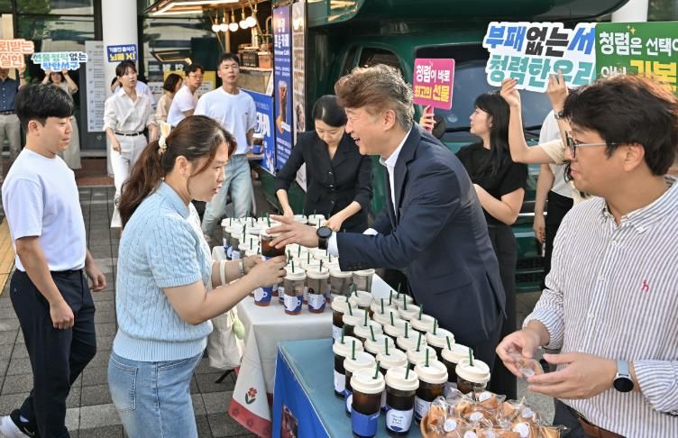이날 캠페인에서는 서구청 정문 출입구에서 출근하는 직원들에게 청렴 명언이 담긴 포춘쿠키와 커피·에이드 등 음료를 함께 제공해 청렴 메시지를 전했다.