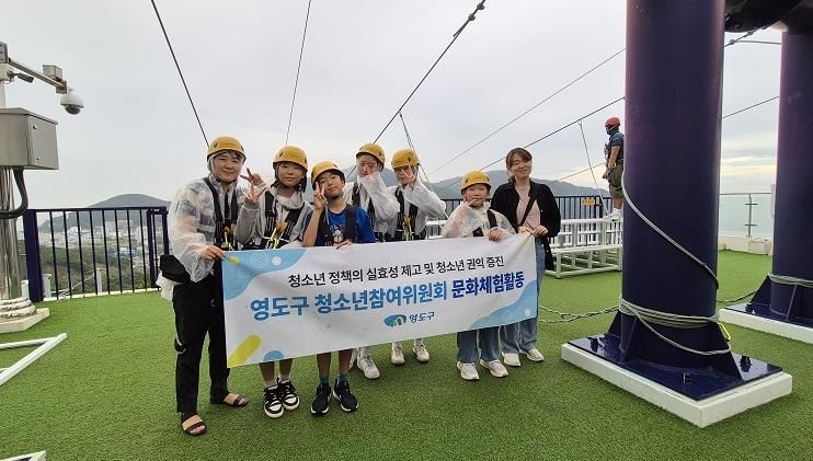 이번 체험활동은 청소년의 구정 사업 참여를 확대하고 여가 활동을 지원하기 위해 마련됐으며, 사전 신청한 학생 5명이 태종대의 수려한 자연 경관과 청량한 파도 소리를 배경으로 외줄 하나에 몸을 맡긴 채 짚와이어를 체험하며 짜릿한 공중 질주를 즐겼다.
