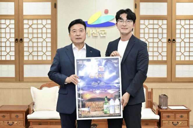 한방통신사 신태공 기자 | 예산군과 ㈜선양소주는 군청 상황실에서 최재구 예산군수와 윤승진 ㈜선양소주 서부지점장 등이 참석한 가운데 군 대표 축제인 ‘제9회 예산장터 삼국축제’ 홍보를 위한 ‘맑을 린’ 소주 홍보라벨 전달식을 진행했다고 29일 밝혔다.