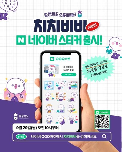 한방통신사 권영분기자 기자 | 충북도는 브랜드 소통캐릭터 ‘치치비비와 설레는 충북!’을 주제로, 충청북도의 매력을 담은 애니메이션 스티커 24종을 네이버OGQ마켓을 통해 누구나 무료로 내려받아 즐길 수 있도록 배포한다고 밝혔다.