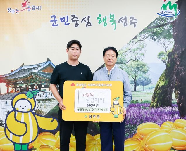 농업회사법인 천우는 성주읍에서 2023년 11월부터 법인을 설립하여 참외유통업을 시작했으며, 이기훈대표는 고향인 성주군에서 사업을 하면서 기부를 하고 싶었는데 이번 기회에 성금을 기탁하게 됐다고 한다.