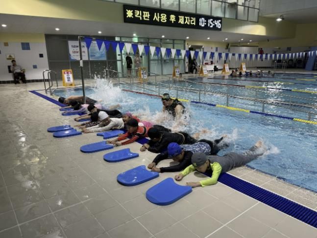 강습 과정에서는 △물 적응과 기본 발차기 △팔돌리기와 호흡법 △자유형 기본 동작 △생존수영(구명조끼 활용 등)까지 단계적으로 교육이 이뤄졌으며, 학생들의 눈높이에 맞춘 체계적인 프로그램 운영으로 큰 호응을 얻었다.