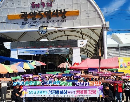 한방통신사 신다은기자 기자 | 광양시는 지난 9월 26일 광양시 여성단체협의회(회장 황호순)가 광양읍 5일장에서 ‘양성평등 인식 확산 캠페인’을 진행했다고 밝혔다.