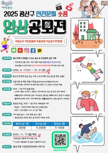 한방통신사 김성의 기자 | 광주 광산구가 시민이 직접 참여하는 ‘2025 광산구 안전문화 숏폼 영상공모전’을 개최한다.