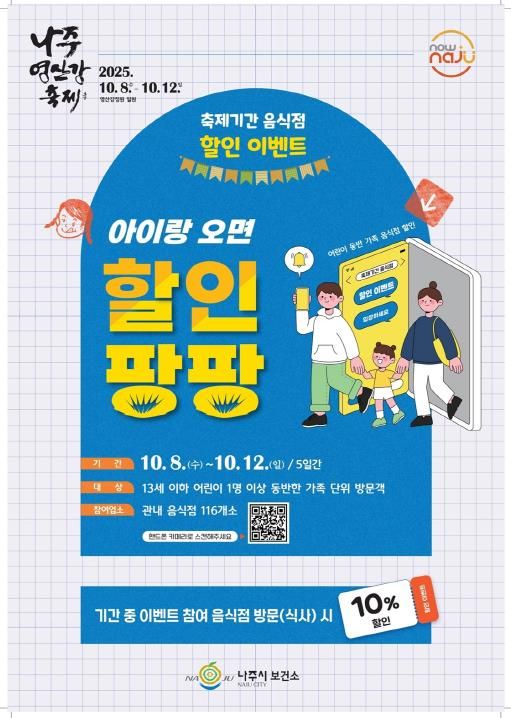 13세 이하 어린이를 동반한 가족이 이벤트 참여 음식점에서 식사 시 10% 할인을 받을 수 있으며 총 116개 음식점이 참여했고 참여 업소는 나주시 홈페이지, SNS 또는 음식점 입구 포스터를 통해 확인할 수 있다.