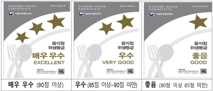 식품의약품안전처에서 주관하는 위생등급제는 음식점의 위생 수준을 평가하는 제도로 영업장의 전반적인 위생 상태 등 44개 항목에 대해 매우 우수, 우수, 좋음의 3단계로 등급을 부여한다.