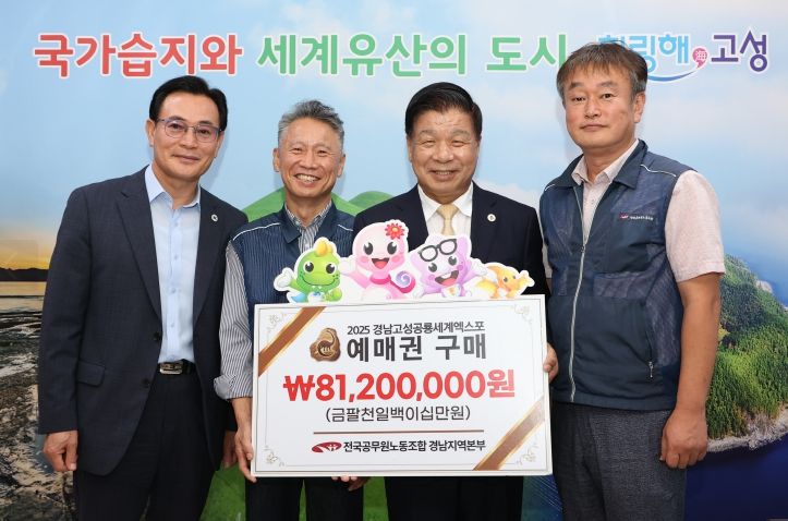 한방통신사 신유철기자 기자 | 경남 고성문화관광재단은 전국공무원노동조합 경남지역본부(본부장 강수동)가'2025경남고성공룡세계엑스포'의 성공적인 개최를 위해 8,120만 원 상당의 예매권 구매를 적극 지원했다고 밝혔다.